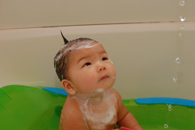 --Your hair is getting ridiculously long. But I just don't want to cut it yet! You're still so small! What 7 month old needs a hair cut?!